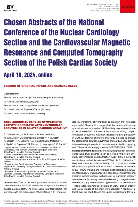 E. Dziewięcka, et al. Does abnormal cardiac sympathetic activity correlate with ventricular arrythmias in dilated cardiomyopathy? Nuclear Medicine Review 2024; 27:17; doi: 10.5603/nmr.101650)